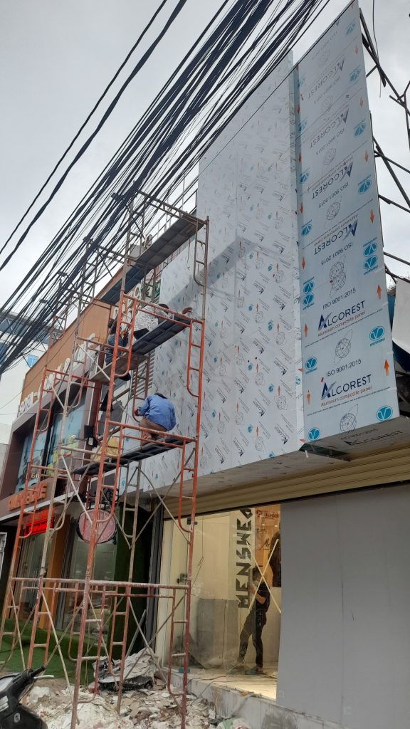 Đặc biệt, với các công ty thuê nhà cũ làm văn phòng hoặc các cửa hàng muốn đầu tư bài bản cho mặt tiền của doanh nghiệp thì sử dụng tấm Alu làm mặt dựng cho toà nhà hay cửa hàng là một giải pháp hữu hiệu: Nhanh, đẹp, sang trọng và tiết kiệm chi phí do không phải tốn nhiều chi phí xây dựng. Các tòa nhà mới xây dựng cũng đang có xu hướng sử dụng tấm Alu để trang trí cho thêm phần bề thế và sang trọng.